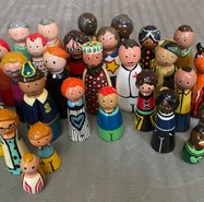 Ett grundkit består av 13 figurer i en kombination av vuxna och barn, där de vuxna är 8 cm höga. Men vill ni hellre ha fler små figurer får det såklart plats fler i lådan, så som på bilden här bredvid.